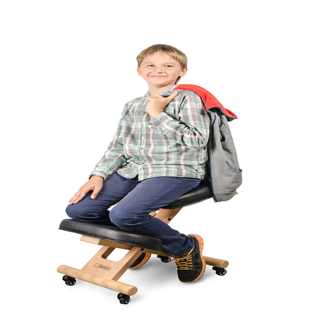В отличие от простого стула, к которому все привыкли, US MEDICA Zero Mini имеет специальный упор для коленей. За счет этого упора вес с тазобедренных суставов и поясницы переносится на ноги. В результате ребенок, сидя на стуле, вынужден  удерживать спину постоянно прямой. И никакого дискомфорта при этом! Угол наклона сидения и высота стула регулируются, поэтому  US MEDICA Zero Mini  можно подстроить индивидуально под пользователя. Со стулом US MEDICA Zero Mini  вам больше не надо беспокоиться об осанки вашего ребенка!